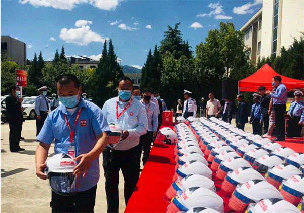 为了提高丽江市市民的安全防护意识、防护水平,5月10日下午,丽江市公安局交警支队联合中共丽江市委宣传部、交通运输局、市应急管理局、市场监督管理局在交通安全警示教育中心广场举行丽江市"一盔一带"安全守护行动启动仪式。万顺叫车丽江分公司为市民准备了100顶安全头盔,在启动仪式现场免费向市民发放,为市民的安全出行提供保障。